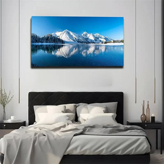 Blue Sky White Snow Wall Art Canvas Office Home Room Framed 120x60cm