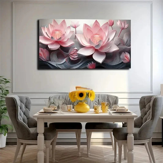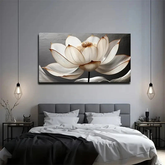 Elegant Lotus Flower Wall Art Canvas Office Home Room Framed 120x60cm