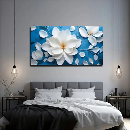 Flowers White Petals Suitable Wall Art Canvas Office Home Room Framed 120x60cm