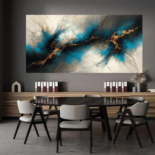 Black & Blue with Golden Accents Fluid Abstract Design Wall Art wall canvas office home room framed 120x60cm