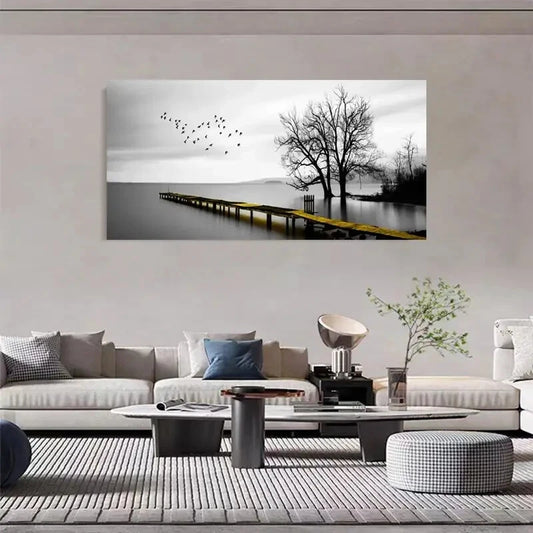 Black White Lakes Wooden Bridge Wall Art Canvas Office Home Room Framed 120x60cm