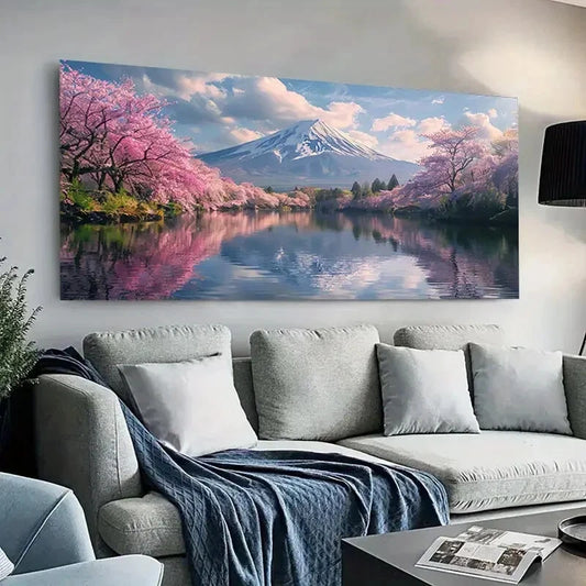 Serene Mount Fuji Cherry Sakura Wall Art Canvas Office Home Room Framed 120x60cm