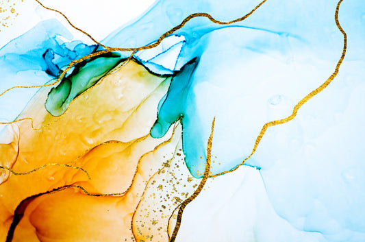 Colourful Blue Yellow & Gold Abstract Design Print 100% Australian Made