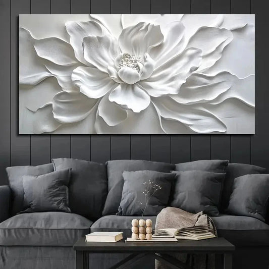 Panoramic Canvas 3D White & Gold Floral Design High Quality 100% Australian made wall Canvas Print ready to hang