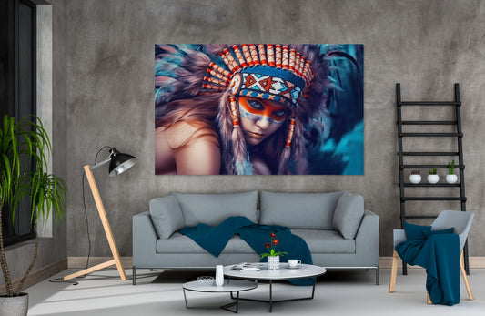 Native American Girl stunning multicoloured Print 100% Australian Made