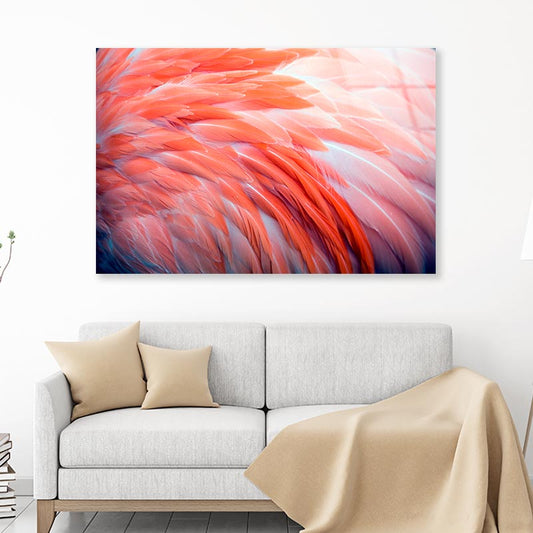Close Up View of Pink Flamingo Feathers Acrylic Glass Print Tempered Glass Wall Art 100% Made in Australia Ready to Hang