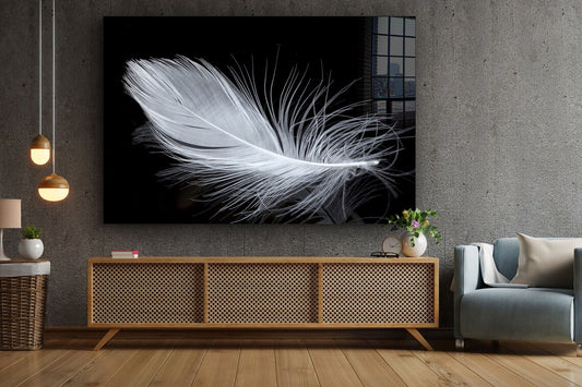 Beautiful White Feather Acrylic Glass Print Tempered Glass Wall Art 100% Made in Australia Ready to Hang