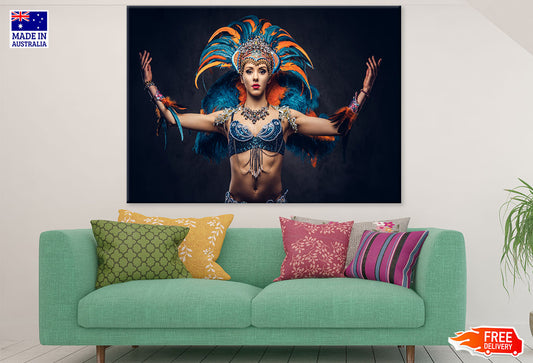 Girl with Feather Headdress View Home Decor Premium Quality Poster Print Choose Your Sizes
