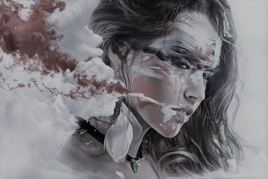 Native Headdress Girl & White Horses Painting Print 100% Australian Made