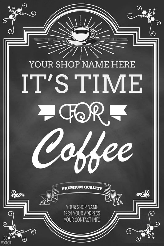 Coffee Time Quote Black Board Kitchen & Restaurant Print 100% Australian Made