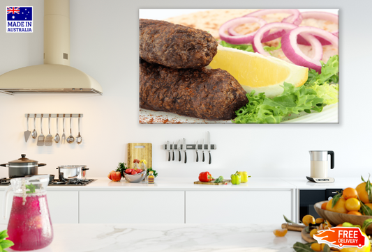 Dinner Kofte Kebabs On Skewers On White Plate With Lettuce Print 100% Australian Made