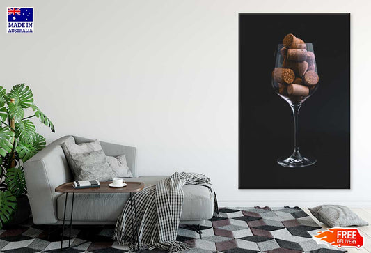 Glass Filled with Corks on Dark View Photograph Print 100% Australian Made