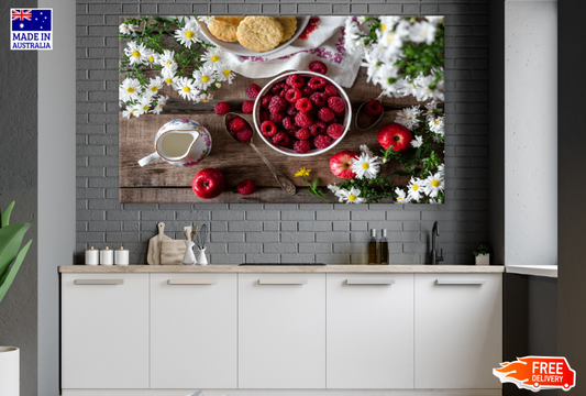 Strawberry & Apples On Table With Flowers Print 100% Australian Made