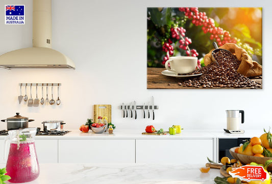 Cup Coffee with Coffee Beans View Photograph Print 100% Australian Made