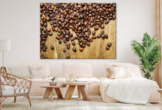 Coffee Beans on Wooden Background View Print 100% Australian Made