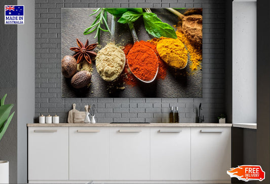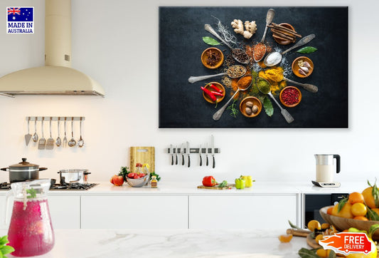 Various Herbs and Spices with Spoons & Bowls Photograph Print 100% Australian Made