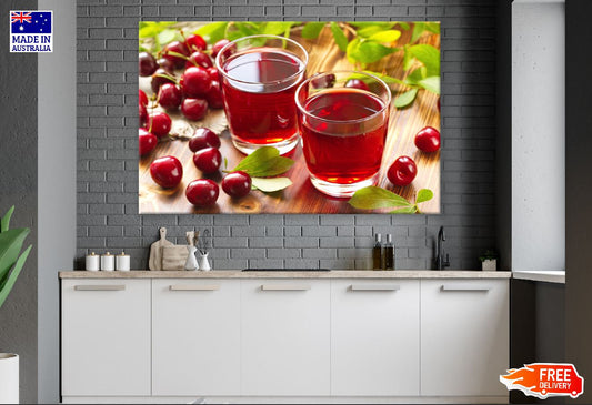 Cold Cherry Juice Glasses with Fresh Berries Photograph Print 100% Australian Made