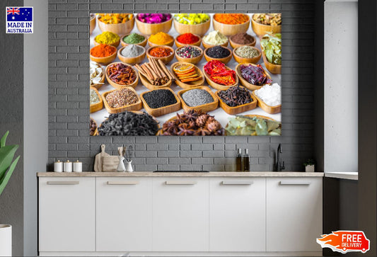 Healthy Spices With Wooden Bowls Photograph Print 100% Australian Made