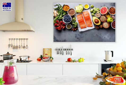 Healthy Fruits Vegetatables & Fish Photohraph Print 100% Australian Made