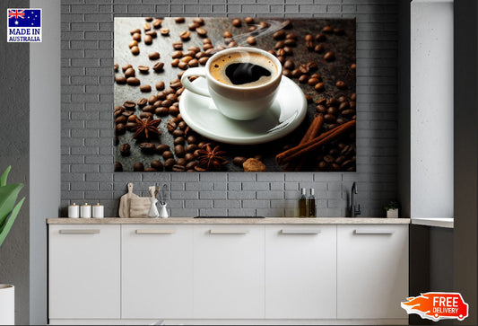 Coffe with Beans Top View Photograph Print 100% Australian Made