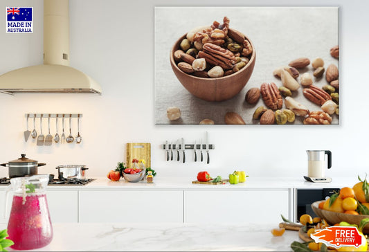 Mixed Nuts in Wooden Bowl Closeup Photograph Print 100% Australian Made