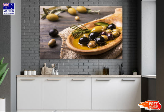 Rosemary Olives and Virgin Oil on the Wooden Table Print 100% Australian Made