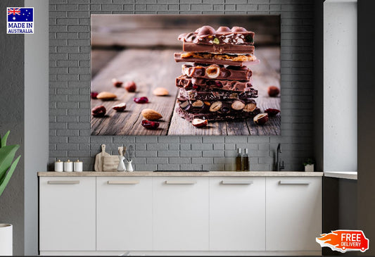 Stack of Milk and Dark Chocolate with Nuts Photograph Print 100% Australian Made