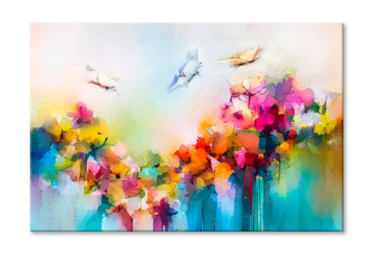 Butterfly Flying Over Spring Flower Oil Painting Wall Art Limited Edition High Quality Print