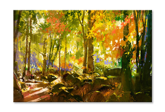 Brown Colorful Autumn Forest Oil Painting Limited Edition High Quality Print