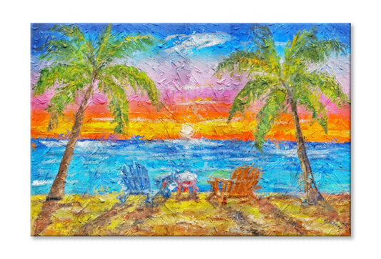 Chair Lounges on the Beach Shore Tropical Nature with Palm Trees Wall Art Limited Edition High Quality Print