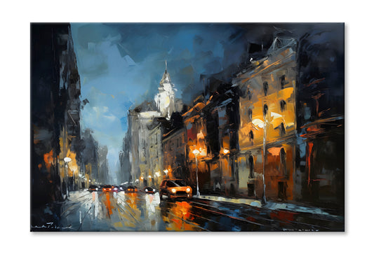 City Night Road with Vehicle Oil Painting Wall Art Limited Edition High Quality Print
