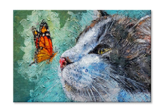 Cat and Butterfly on Nose. Cute Kitten Sleeping With Insect Wall Art Limited Edition High Quality Print