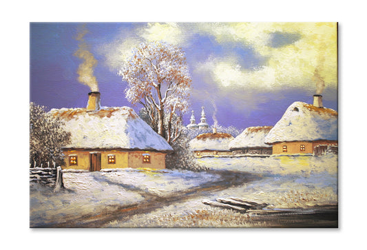 Church in Winter & Houses Landscape Oil Painting Wall Art Limited Edition High Quality Print