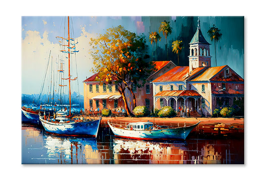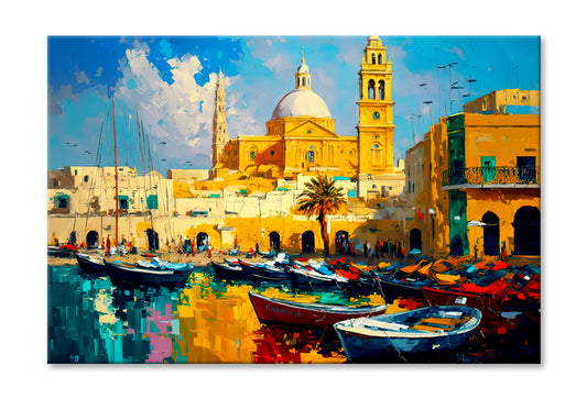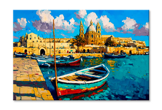Cityscape View Inspired From Marsaxlokk Oil Painting Wall Art Limited Edition High Quality Print