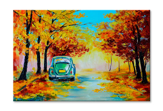 Car In The Colorful Autumn Forest Road Wall Art Limited Edition High Quality Print