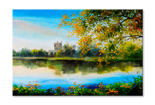 City In Autumn, Scenic Landscape With A Pleasant Trees Oil Painting Limited Edition High Quality Print