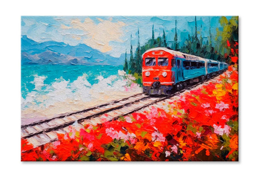 Coastal Railway Train & Flower Field Wall Art Limited Edition High Quality Print