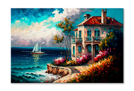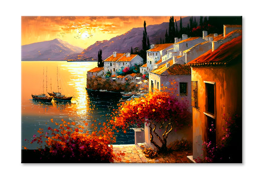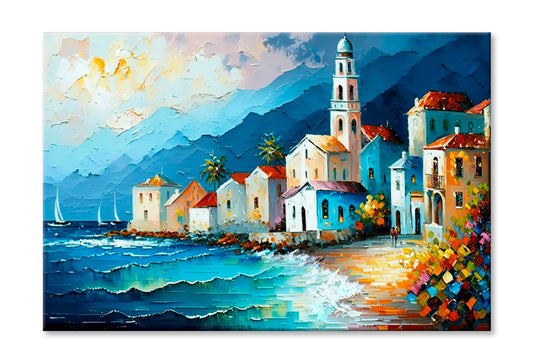 Coastal Line Village Oil Painting Wall Art Limited Edition High Quality Print