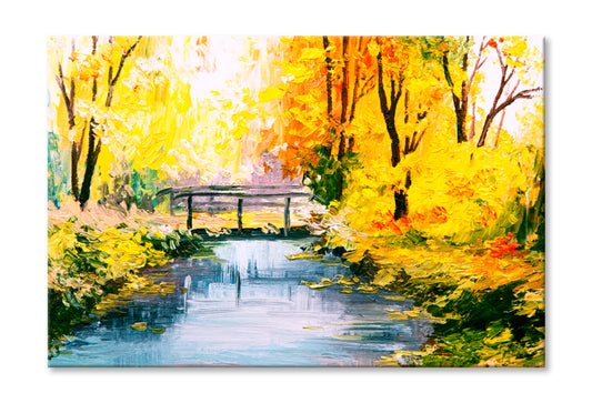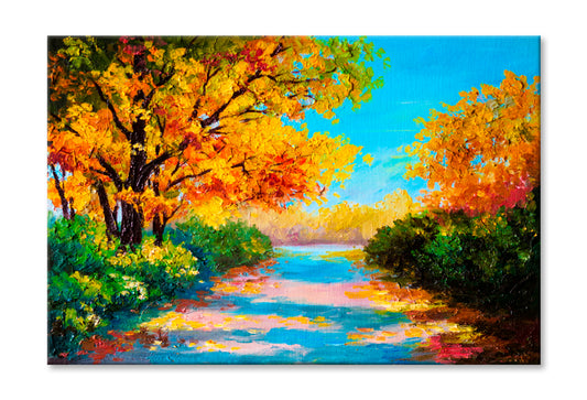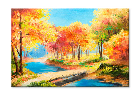 Colorful Autumn Forest With River Oil Painting Wall Art Limited Edition High Quality Print