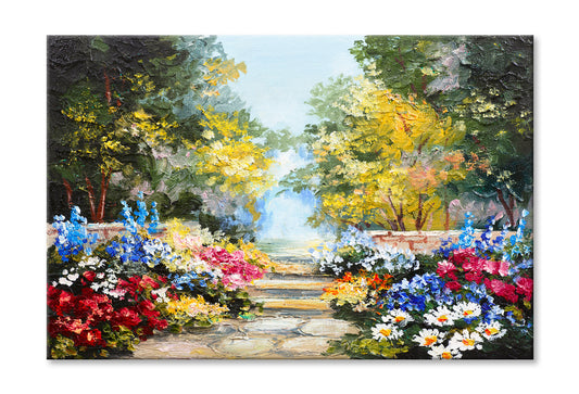 Colorful Summer Flowers with Trees Oil Painting Wall Art Limited Edition High Quality Print
