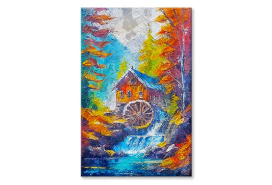 Country House. Water Mill. Beautiful Autumn Season. Mountain River in the Forest Wall Art Limited Edition High Quality Print