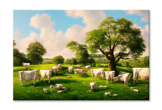 Countryside In Summer With Dairy Cows Eating In The Shade Of A Tree Oil Painting Limited Edition High Quality Print