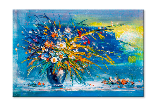 Daisy Flowers & Leaves in Vase Oil Painting Wall Art Limited Edition High Quality Print