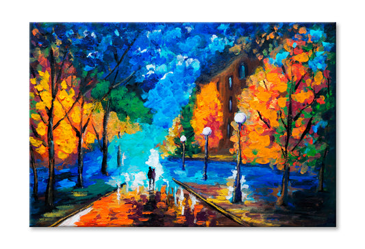 Couple Walking on Road with Autumn Trees Oil Painting Wall Art Limited Edition High Quality Print