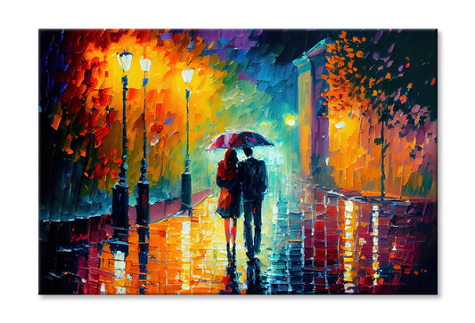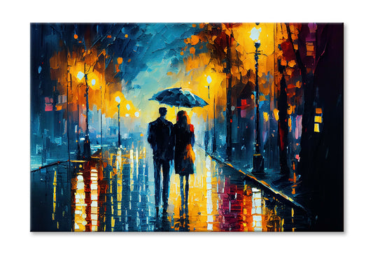 Couple with Umbrella Walking on Road Painting Wall Art Limited Edition High Quality Print