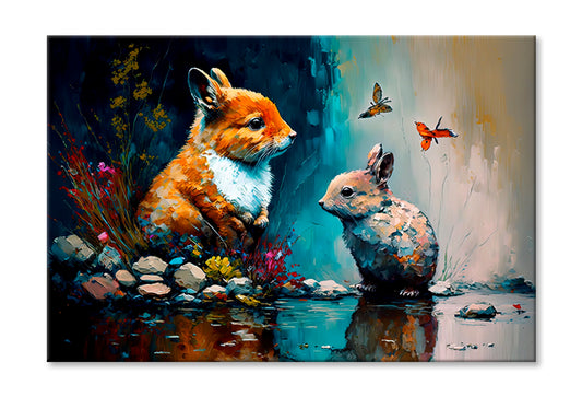 Cute Short Ear Rabbit With Nature Oil Painting Wall Art Limited Edition High Quality Print