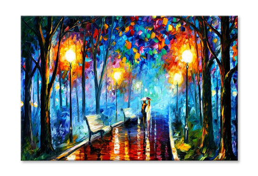 Couple with Umbrella on Road & Trees Oil Painting Wall Art Limited Edition High Quality Print