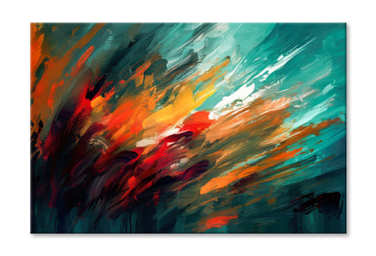 Green Red & Yellow Abstract Brushstrokes Painting Wall Art Limited Edition High Quality Print