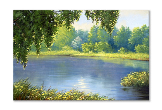 Green Trees & Bushes, Lake Stream River Oil Painting Wall Art Limited Edition High Quality Print