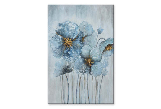 Light Blue Flowers, Gold Blooming Wall Art Limited Edition High Quality Print